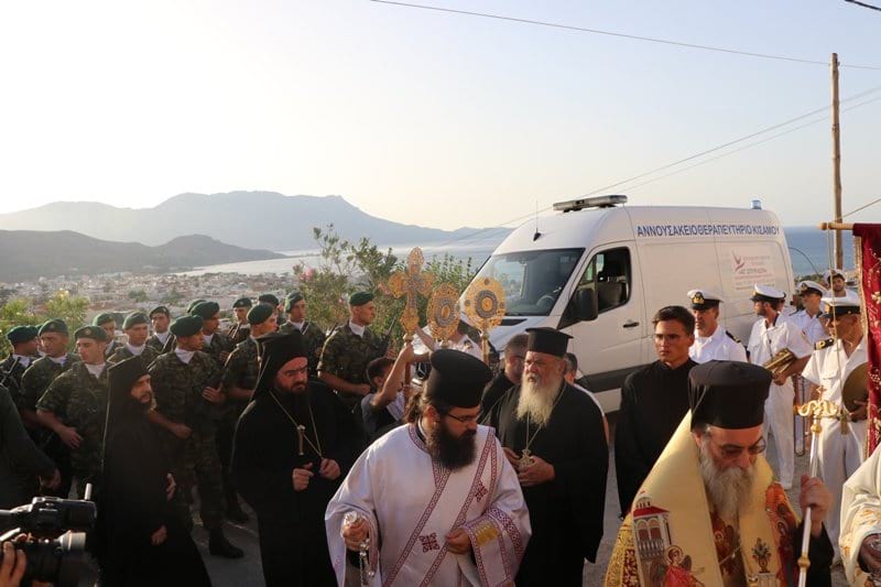 Ο εκπρόσωπος του Καθηγουμένου της Ι.Μεγίστης Μονής Βατοπαιδίου, Ιερομ. κ. Μάξιμος μετέφερε τις ευχές και την αγάπη του Καθηγουμένου της Μονής Βατοπαιδίου, Γέροντος Εφραίμ, ο οποίος λόγω εκτάκτου κωλύματος αδυνατούσε να συνοδεύσει την ιερά Εικόνα. Την Κυριακή, 4 Αυγούστου τελέστηκε Αρχιερατική Θεία Λειτουργία, προεξάρχοντος του Σεβ. Μητροπολίτου Νέας Κρήνης και Καλαμαριάς κ. Ιουστίνου, συμπροσευχομένων του Σεβ. Μητροπολίτου Ατλάντας κ. Αλεξίου και του Ποιμενάρχου κ. Αμφιλοχίου.