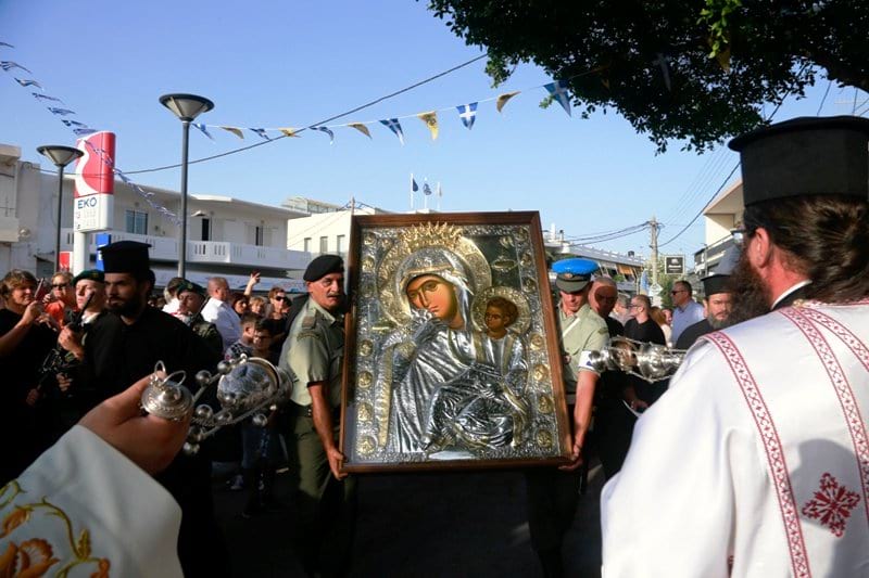 «Περιχαρείς, με πνευματική ευφροσύνη αλλά και ιερό δέος υποδεχόμεθα σήμερα, λιτανεύουμε και εναποθέτουμε δια μόνιμη εγκατάσταση εις τον Παρθενώνα αυτόν, το ακριβές αντίγραφο της Εικόνος της Παρθένου Μαρίας, της επωνομαζομένης «Παραμυθίας», προερχόμενο από την Ιερά Μεγίστη Μονή Βατοπαιδίου του Αγίου Όρους, εκπροσώπου του Πανοσιολογιωτάτου Καθηγουμένου Αυτής, κ. Μαξίμου και μελών της φιλοθέου συνοδείας του. ….