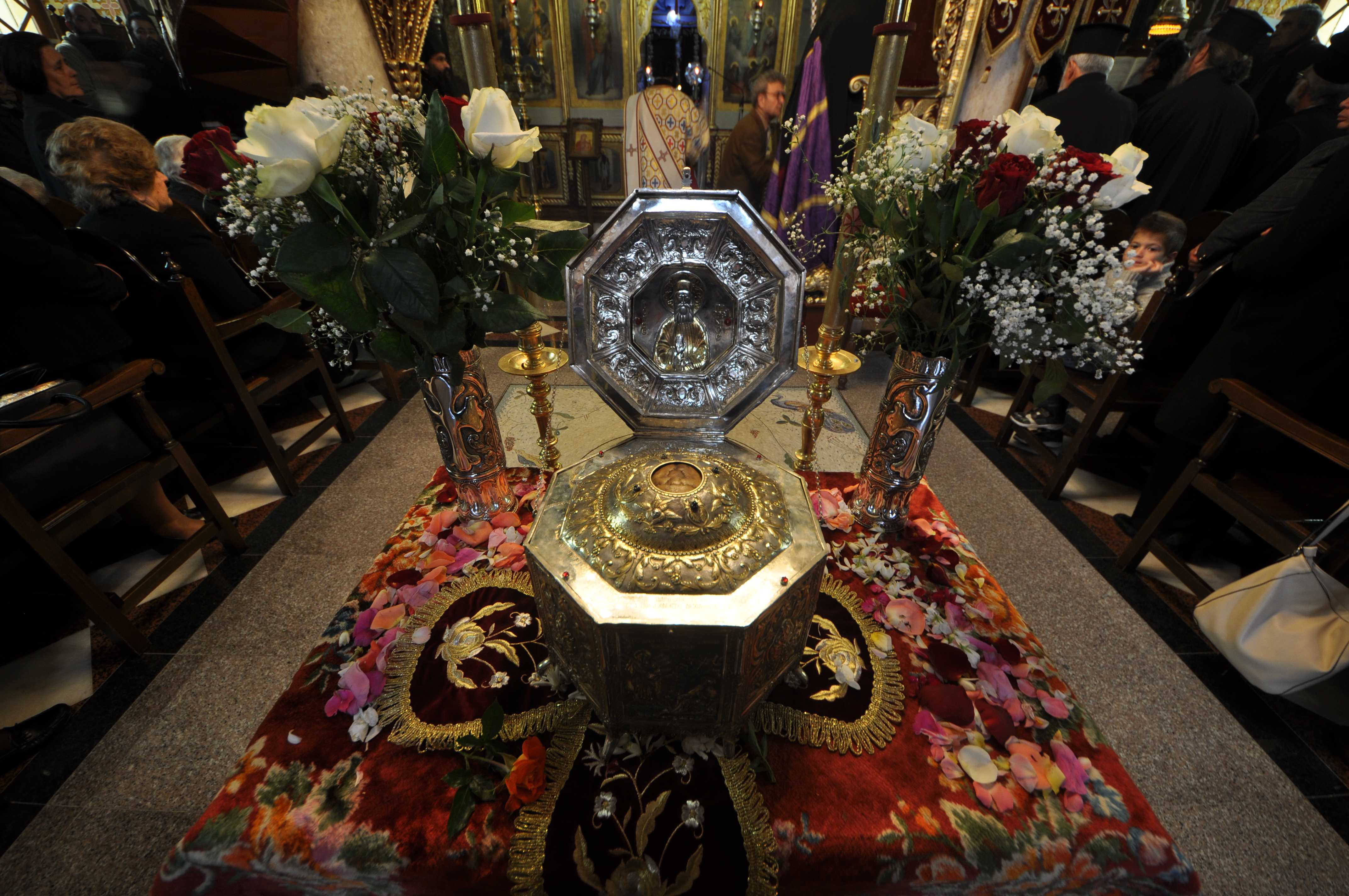 Κατά την διάρκεια  του κατανυχτικού εσπερινού, οι πιστοί είχαν την ευκαιρία να προσκυνήσουν την Αγία Κάρα του Οσίου Παρθενίου, κτήτορος της Ιεράς Μονής Κουδουμά, η οποία μεταφέρθηκε από τον Ηγούμενο π. Μακάριο, προς αγιασμό και ευλογία των.