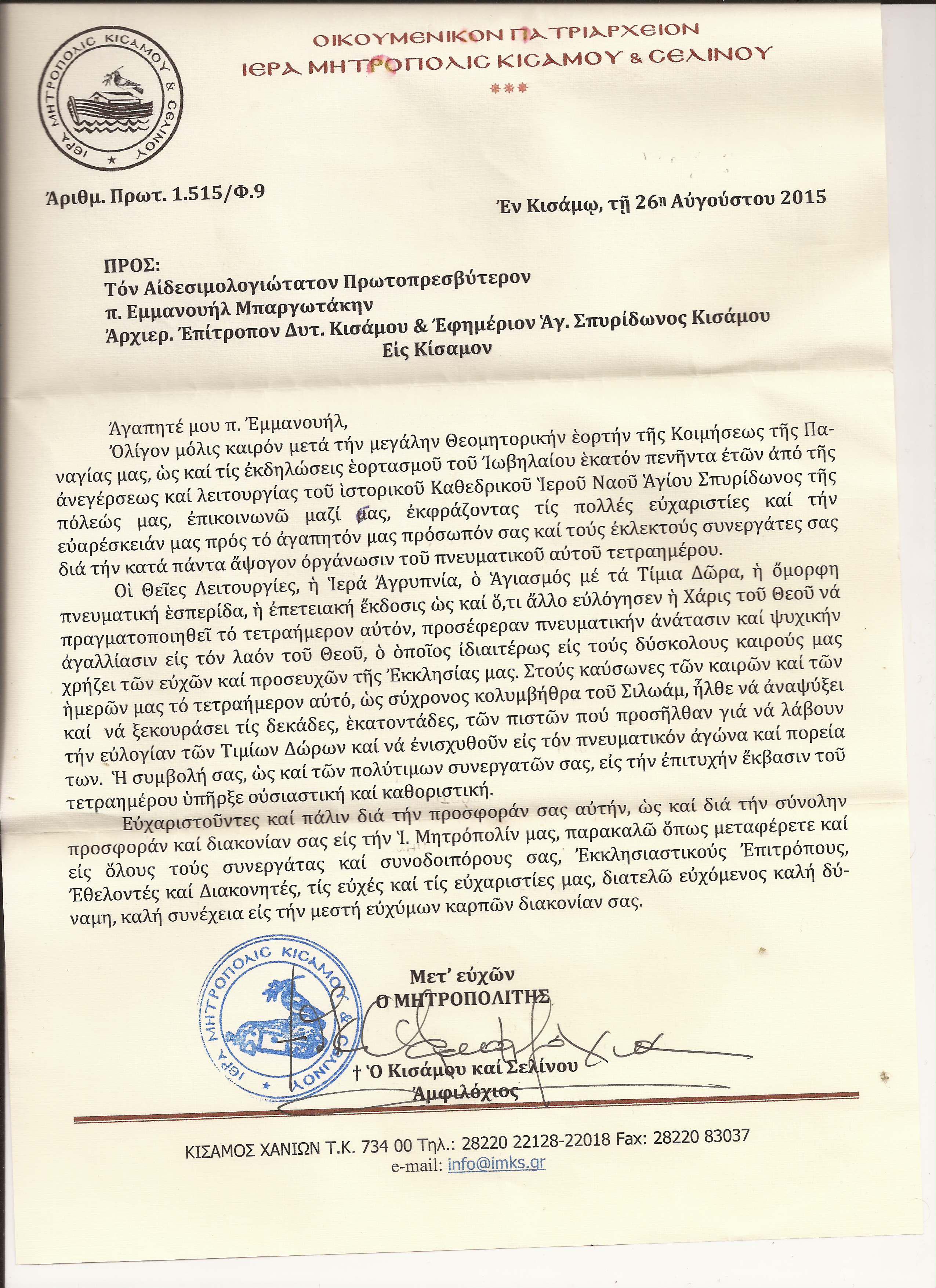 Γράφει ο Σεβ. Μητροπολίτης Κισάμου & Σελίνου, κ.κ Αμφιλόχιος