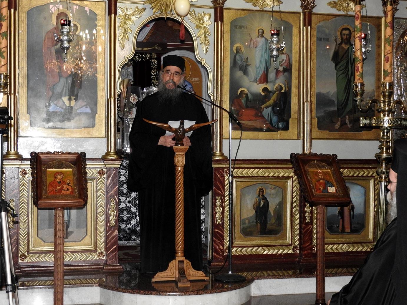 Εις το τέλος του εσπερινού, το πολυπληθές εκκλησίασμα των κληρικών και των λαϊκών αδελφών, είχε την χαρά και ευλογία να απολαύσει την ψυχοφελέστατη ομιλία ενός εκλεκτού σπορέως της Εκκλησίας μας, του Πανοσ. Αρχιμ. κ. Βαρνάβα Λαμπρόπουλου, αδελφού της Ιεράς Μονής Προφήτου Ηλιού Πρεβέζης.