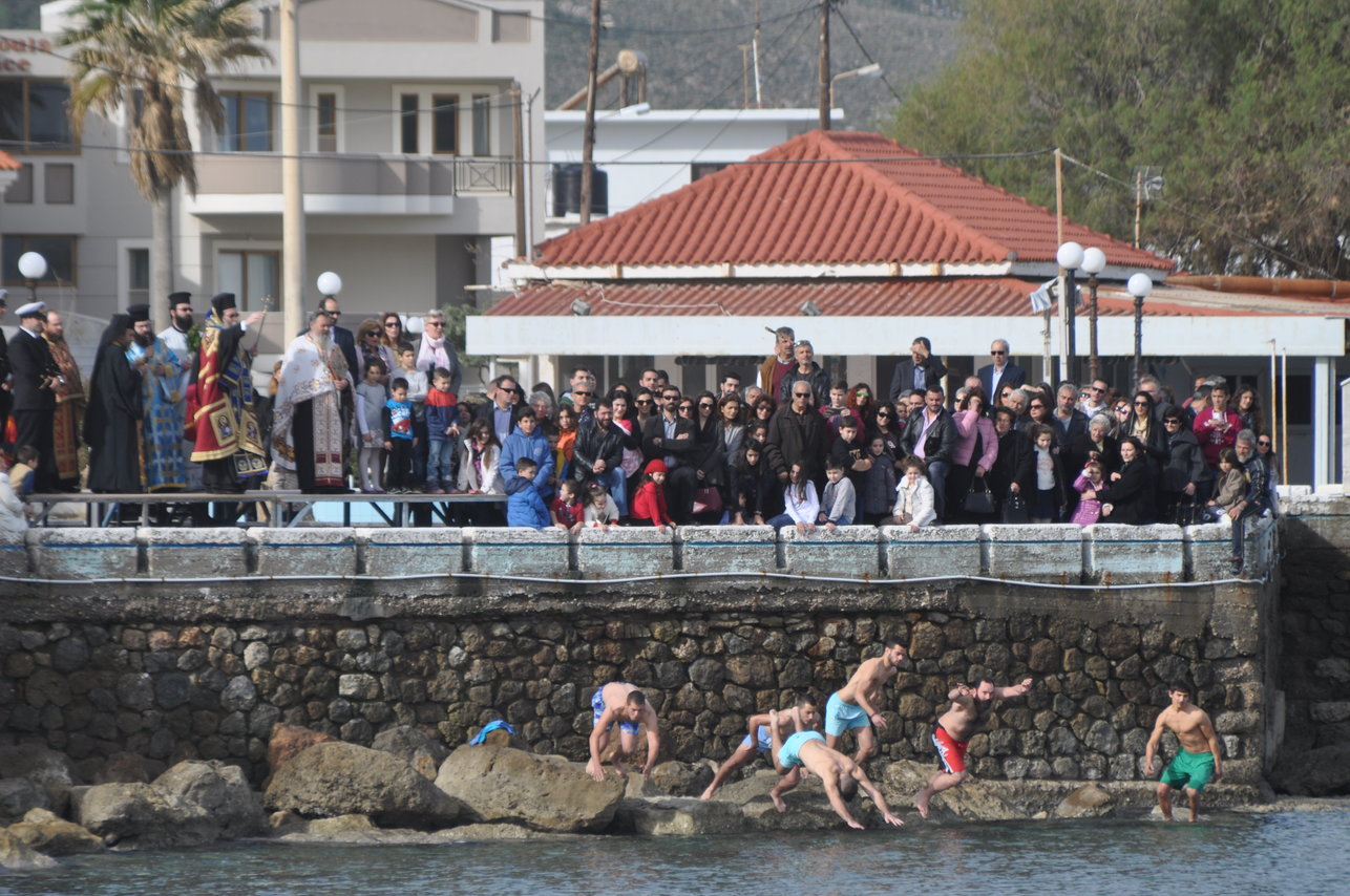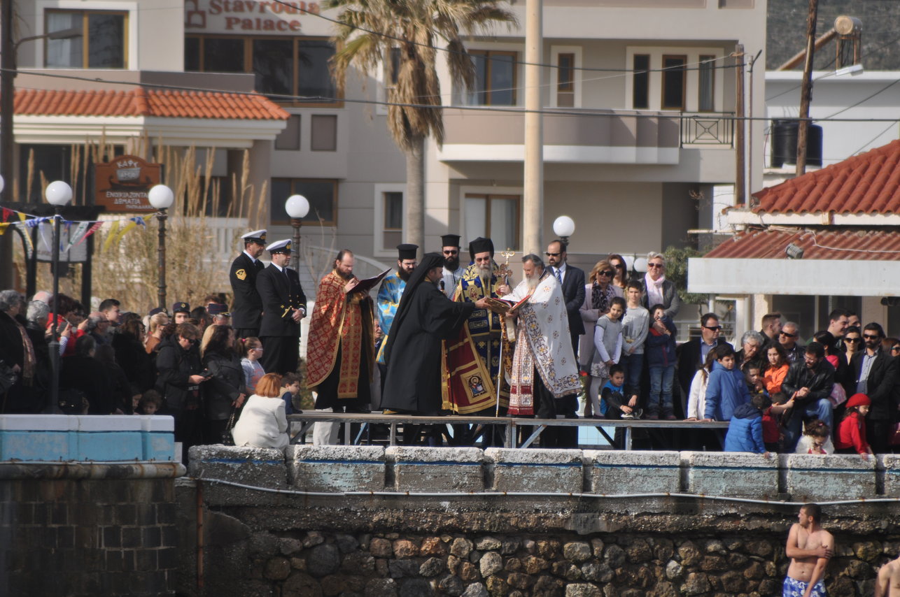 Με ιδιαίτερη ευλάβεια και λαμπρότητα και την συμμετοχή πλήθους πιστών γιορτάστηκαν και φέτος στην Ενορία μας τα Άγια Θεοφάνεια. Μετά το πέρας της θείας λειτουργίας και του μεγάλου αγιασμού, οι ενορίες της πόλεως μετέβηκαν στην παραλία ( παλαιό Τελωνείο) όπου έγινε η ρίψης του Τιμίου Σταυρού στην θάλασσα από τον Σεβασμιώτατο Μητροπολίτη μας κ. Αμφιλόχιο και τον ιερό κλήρο, παρουσία του Δημάρχου, των τοπικών Αρχών και πλήθους πιστών.